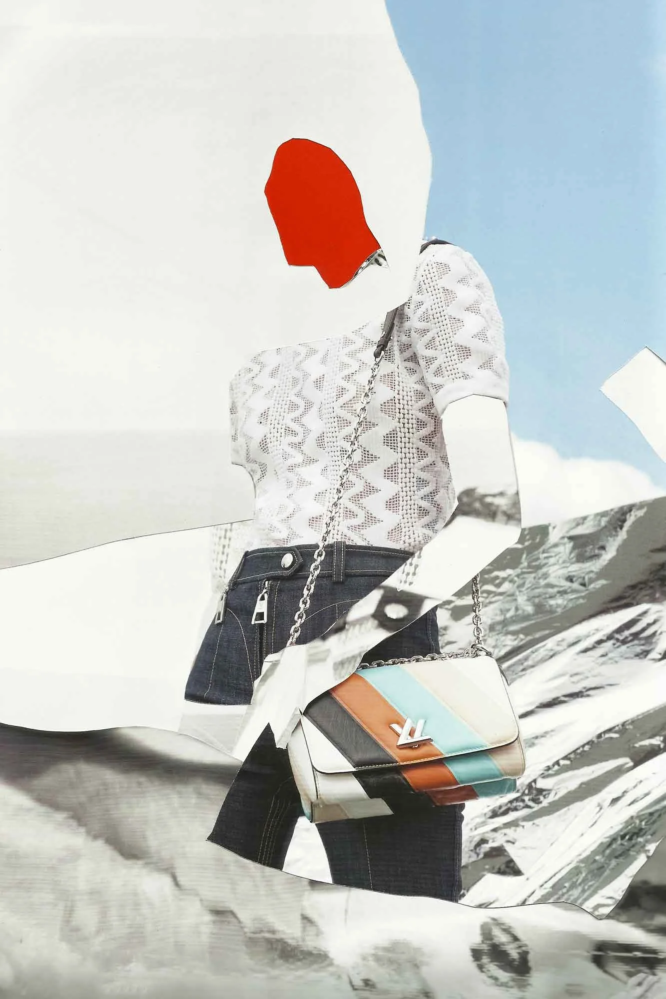 Series of collages are created by using the European art, fashion, and photography magazine Sleek issues and removing all visible parts of the human body in order to make the magazine even sleeker. The works in this series are created coincidently by scanning the overlapping pages of the magazines in their original order.